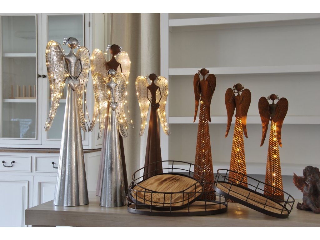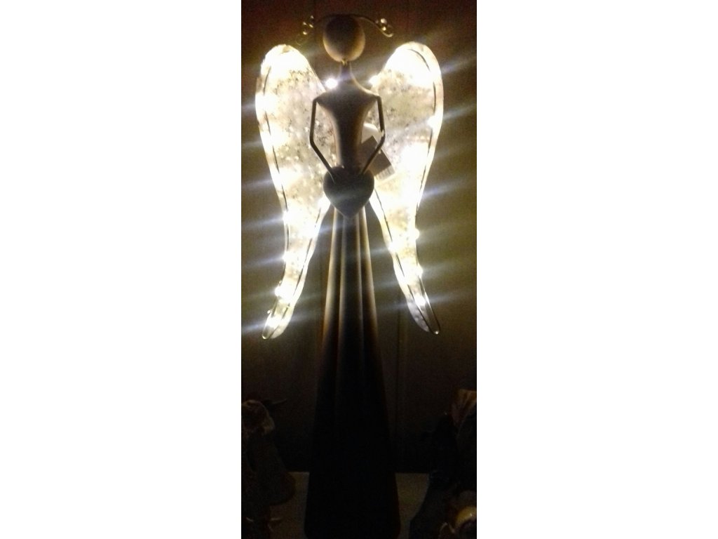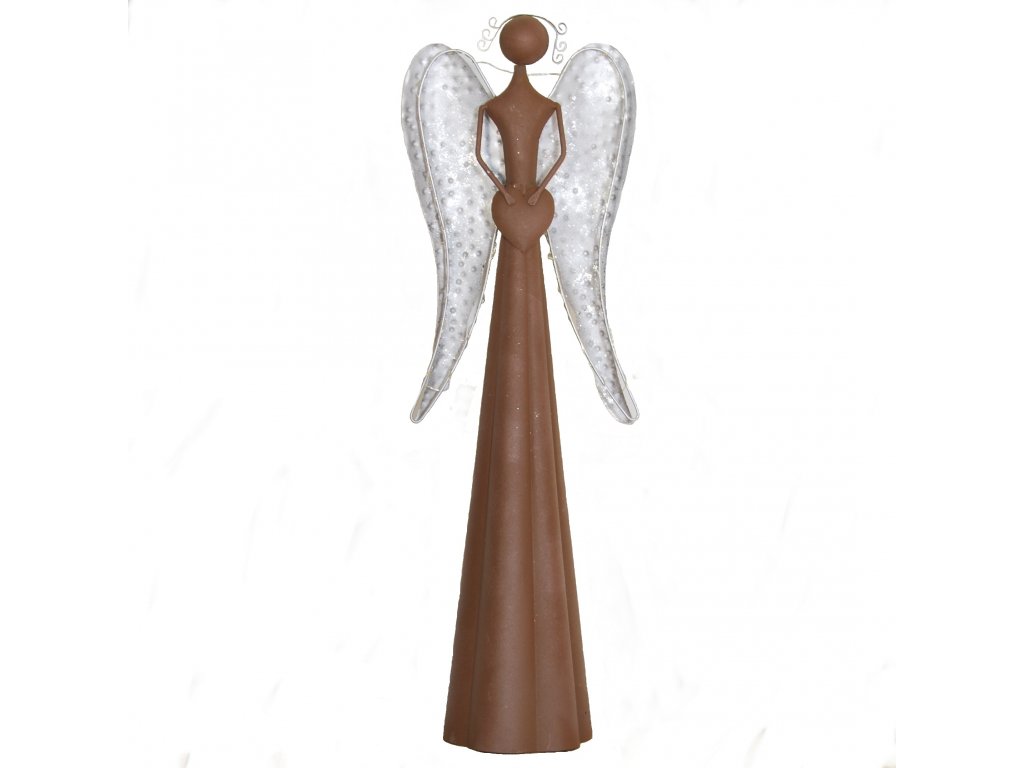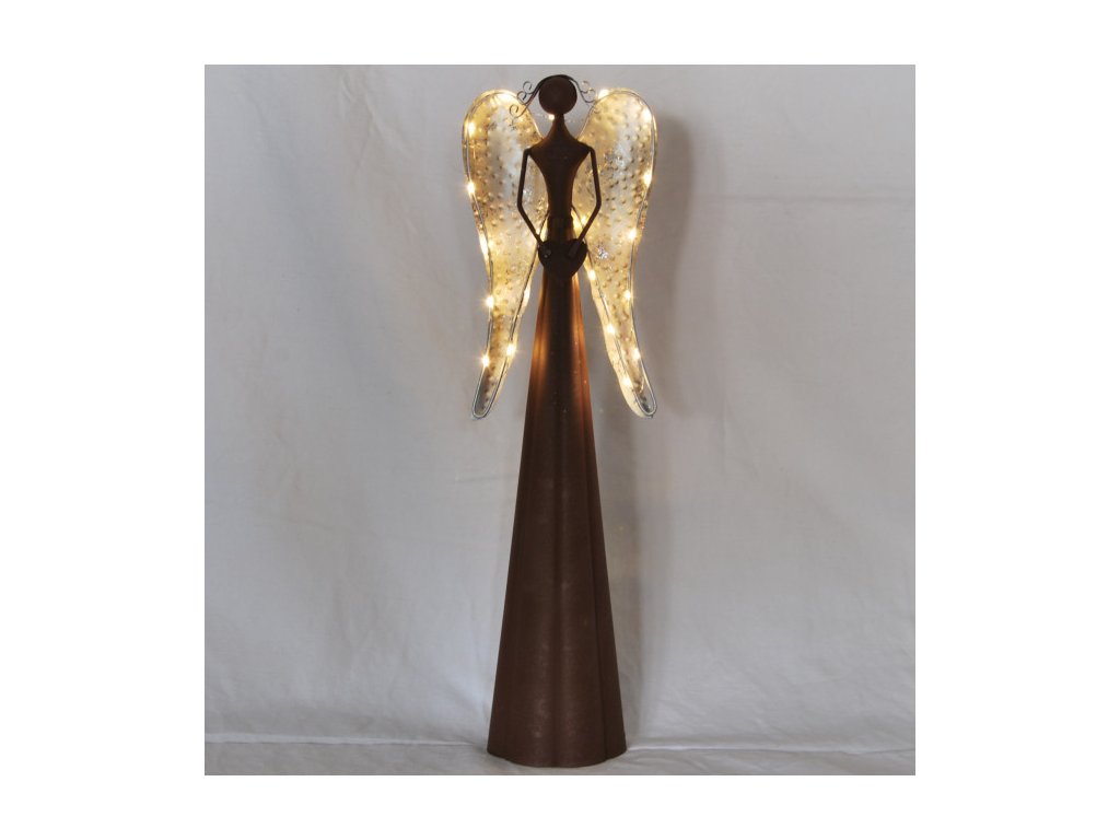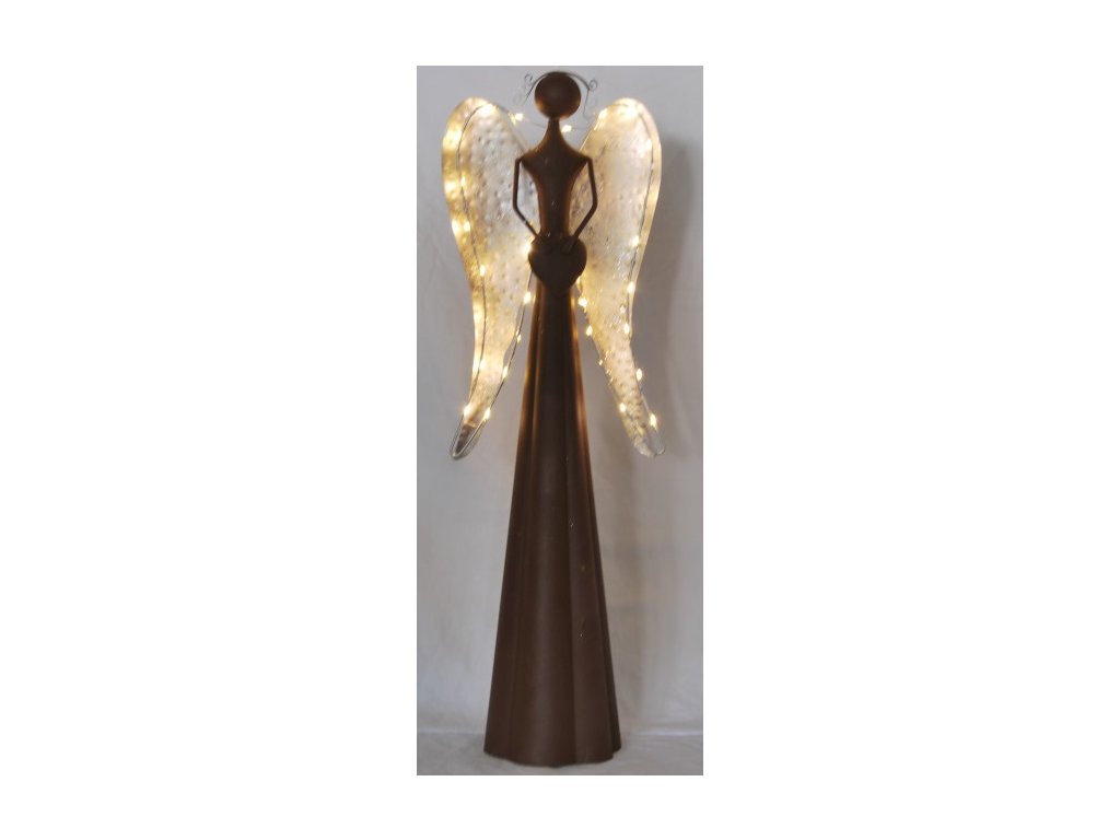 Hnědý kovový anděl se světýlky velký /19*15*66,5 cm/