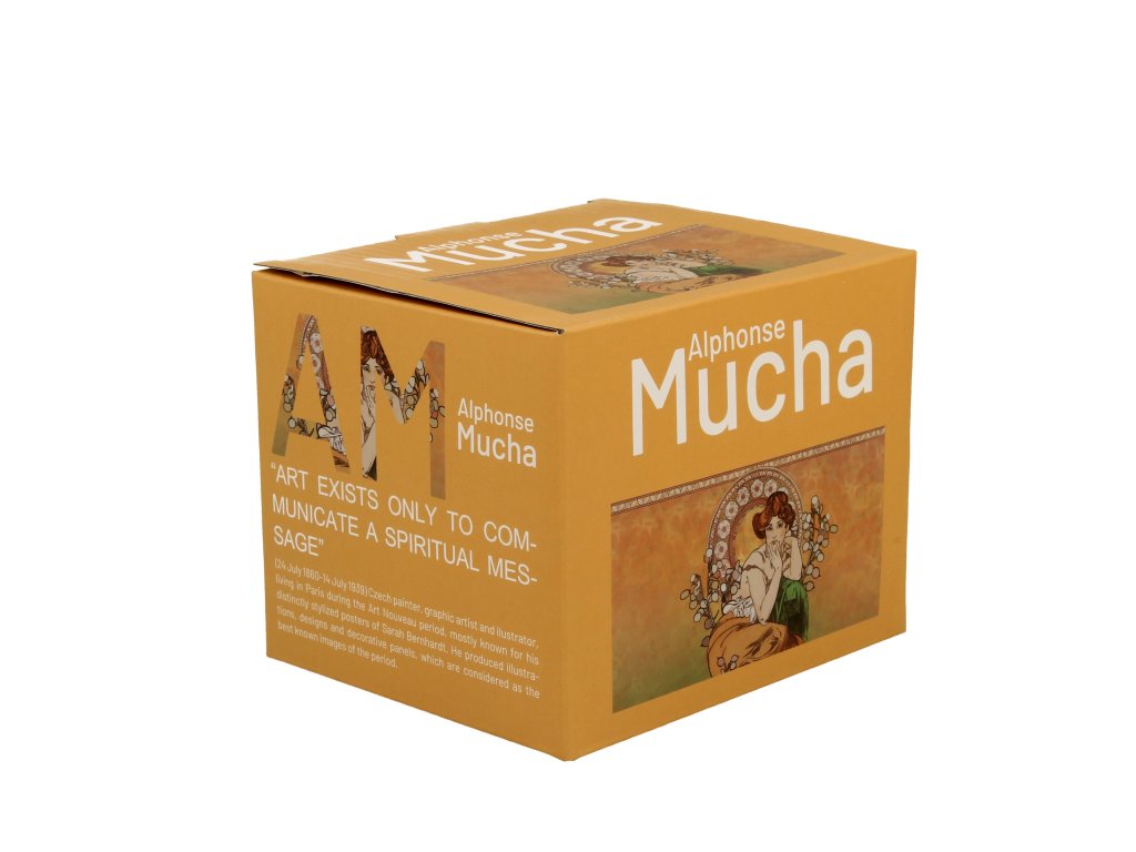 Porcelánový hrnek Barylka TOPAZ inspirovaný A. Muchou, součást série Art Gallery, vyrobený z kvalitního porcelánu, charakterizovaný přirozenou krémově bílou barvou s jemným leskem a výjimečnou pevností a odolností, při zachování lehkosti a jemnosti.Řada z bílého porcelánu zdobená reprodukcí obrazu „Topaz“ od českého malíře Alfonse Muchy. Monochromatické barvy teplé hnědé a bílé dokonale ladí s jemností ženské postavy, kterou umělec představuje.Celý produkt, zabalený v dekorativní krabičce zdobené stejným motivem, je skvělým nápadem na nevšední dárek nejen pro milovníky umění a malířství.TOPAZ je jednou ze čtyř částí, které umělec z roku 1900 nazval „Drahé kameny“. Každý z obrazů zobrazuje ženskou postavu obklopenou květinami a na pozadí, jehož barva odpovídá drahému kameni, který je námětem díla. Žena v popředí má evokovat nadpozemskou bohyni ze světa nepřístupného běžným smrtelníkům. Každé ze čtyř děl se vyznačuje jemnými, harmonickými barvami, které dokonale spolupracují a vytvářejí tak překvapivě dokonalý obraz.