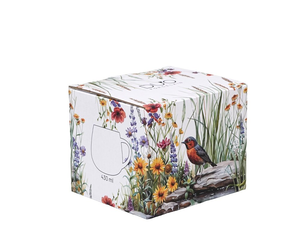 Porcelánový hrnek se sítkem a víčkem, Ptáček v lučním kvítí dárkové krabičce je součástí kolekce Duo Gifts.