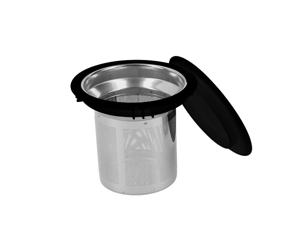 Nerezové sítko na sypaný čaj s víčkem, které se dá použít na odložení.