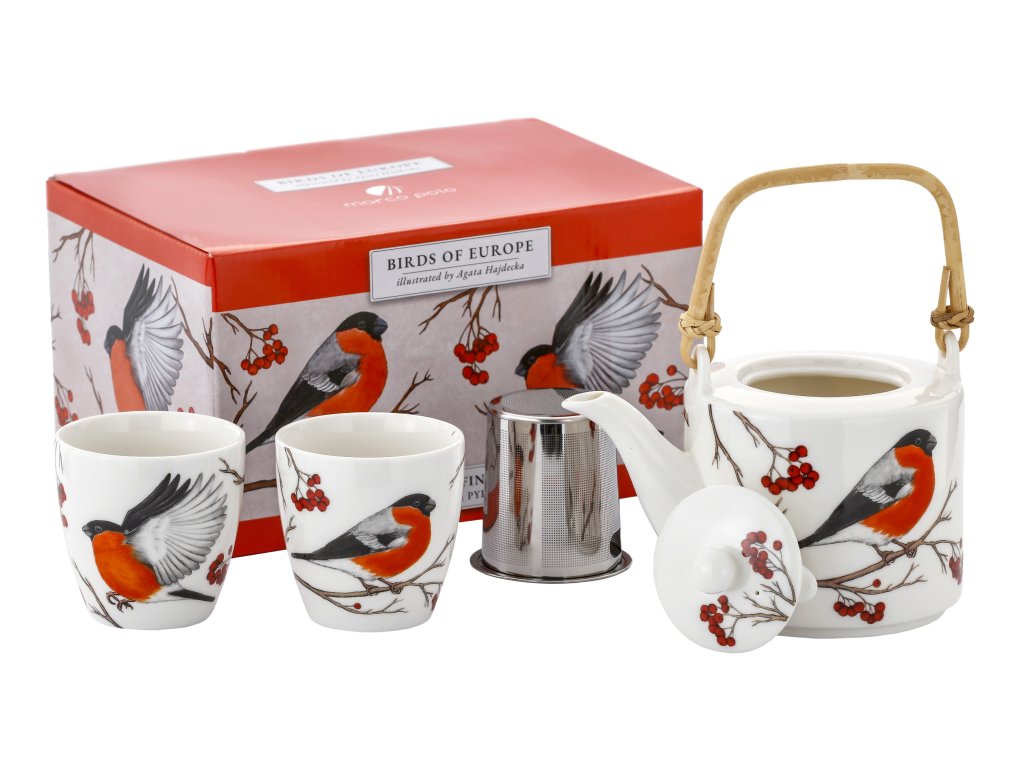Čajová sada z kolekce Evropských ptáků s ilustrací Hýl obecný – Elegantní set v dárkové krabičce