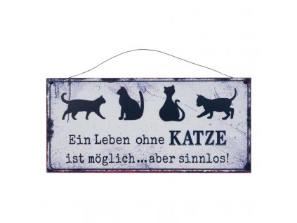 Plechová cedule LEBEN OHNE KATZE je součástí holandské značky Clayre & Eef