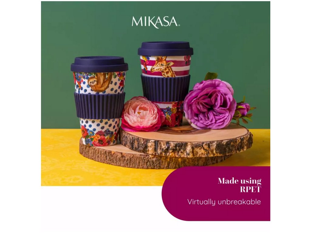 Cestovní hrnek Wild At Heart Giraffe je vyroben z recyklovaného plastu, který je lehký, ale zároveň odolný. Hrnek je snadno přenositelný a díky silikonovému pouzdru se pohodlně drží, ani když je nápoj horký.