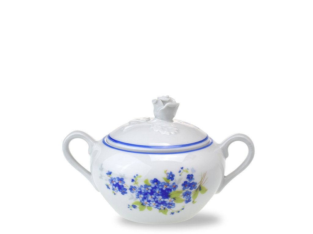 Cukřeneka ve tvaru Rokoko se dvěmi uchy z porcelánky v Dubí. Úchytka na víčku je ručně vymodelovaná růžička. Modré linky Lze použít v mikrovlnné troubě i myčce na nádobí.