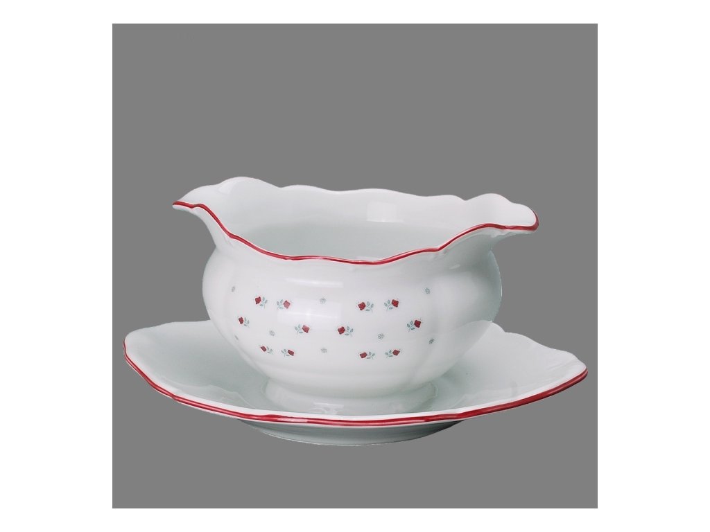 Tělo omáčníku je přilepený k podšálku pro komfortní polévání pokrmu omáčkou. Vtavná dekorace. Lze použít v mikrovlnné troubě i myčce na nádobí.