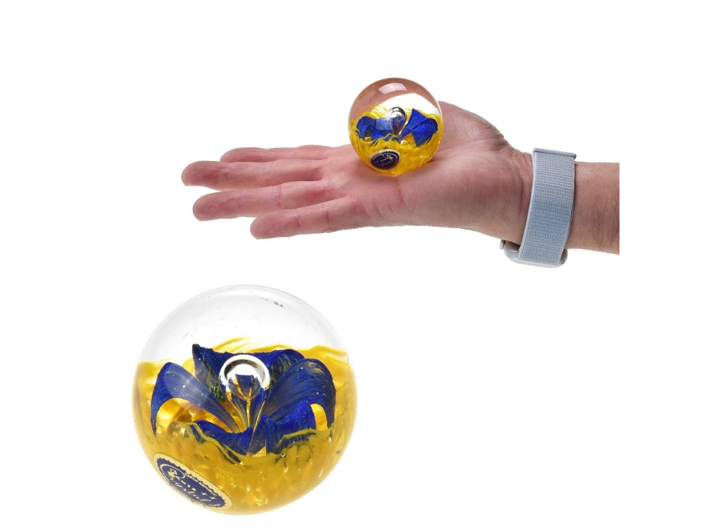 Ručně vyrobené těžítko z hutního skla. Žádný kus není stejný. Občasné drobné bublinky nejsou na závadu.