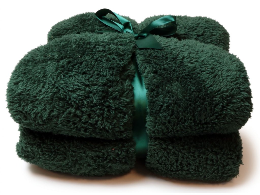 Heboučká deka Teddy v tmavě zelené barvě – oboustranná a elegantní