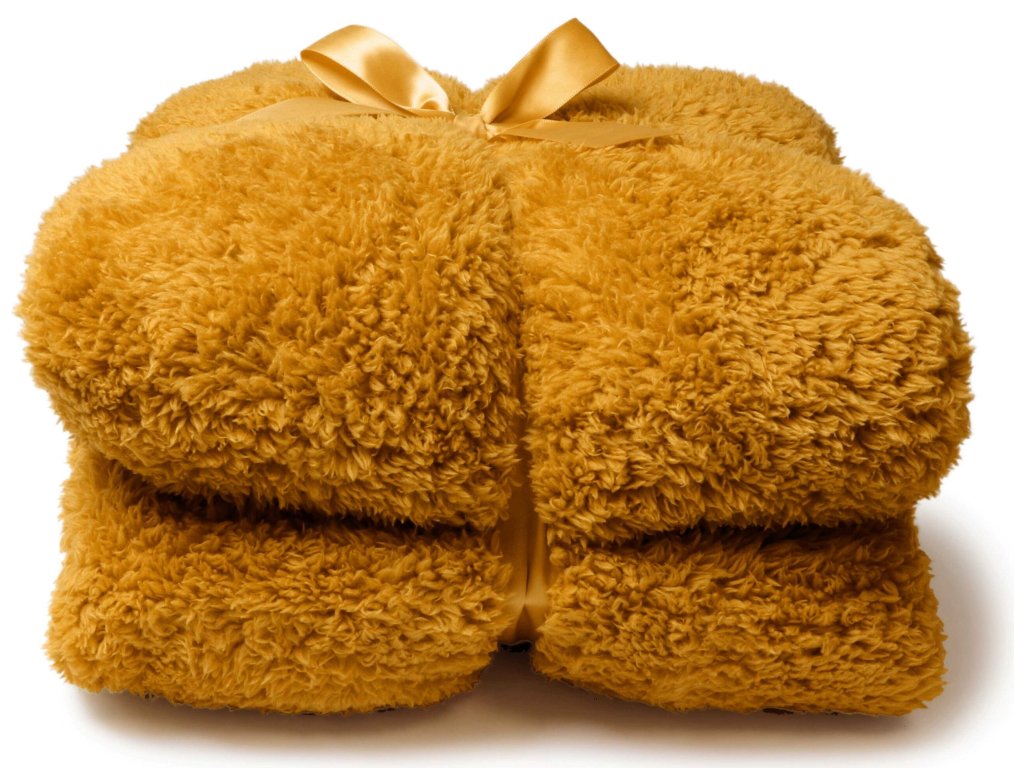 Heboučká deka Teddy – tmavě žlutá
