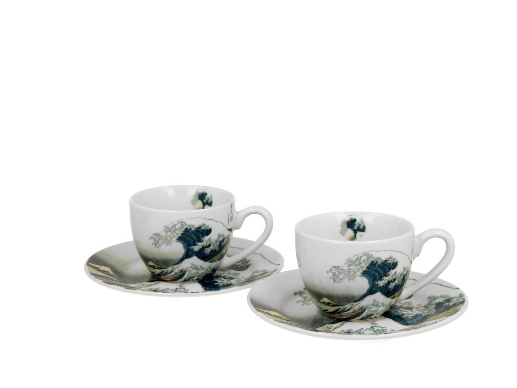 DG - Porcelánová sada šálků s podšálkem na espresso THE GREAT WAVE INSPIRED BY HOKUSAI 2 ks -110 ml