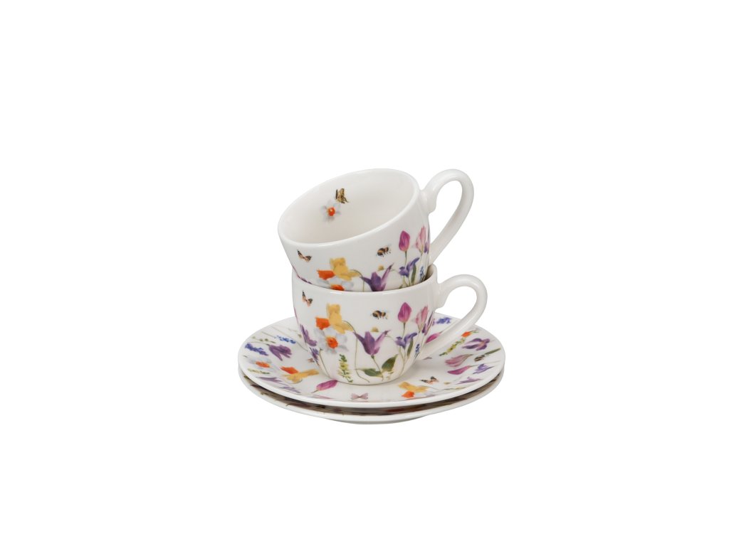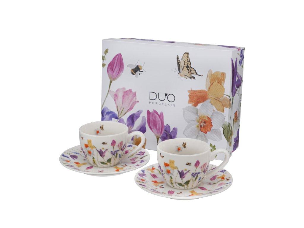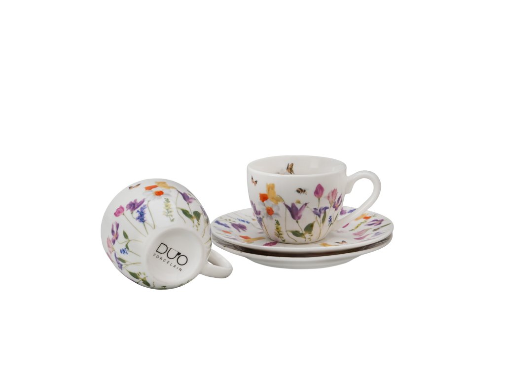 DG - Porcelánové šálky na espresso Luční kvítí se včelkou a motýlkem 2 ks - 110 ml