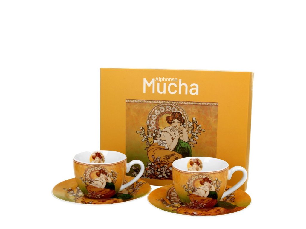 DG - Porcelánové šálky s podšálkem na espresso Alfons Mucha Topaz 2 ks - 110 ml