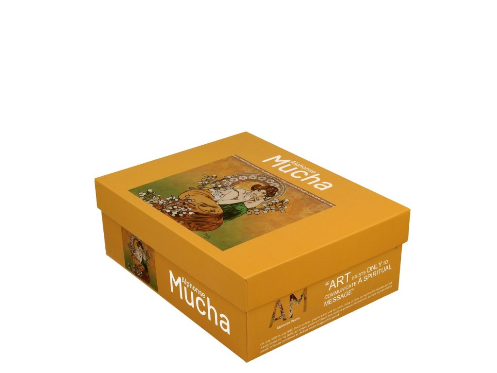 Luxusní šálky s podšálkem na espresso v perfektním dárkové balení. Vhodné do myčky na nádobí i mikrovlnné trouby. Topaz je jedním z motivů ze slavné série Drahokamy (The Precious Stones), kterou vytvořil Alfons Mucha v roce 1900. V této sérii zobrazil čtyři ženské postavy jako ztělesnění vzácných kamenů – topazu, rubínu, ametystu a smaragdu. Každý obraz vyniká bohatou symbolikou, elegantní kompozicí a jemným secesním stylem, pro který je Mucha světově proslulý. Motiv Topaz zobrazuje éterickou ženskou postavu obklopenou zlatavým světlem a jemnými přírodními ornamenty. Tóny žluté, bílé a teplé béžové evokují klid, vnitřní sílu a eleganci. Tvář ženy působí jemně a vyrovnaně, přičemž celý výjev vyzařuje harmonii a noblesu. Tento motiv je ideální pro ty, kdo oceňují klasickou krásu, ženskost a nadčasový design. Produkty s tímto obrazem přinášejí do interiéru jemný dekorativní akcent a kouzlo secese.
