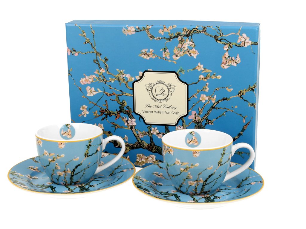 DG - Porcelánové šálky s podšálky na espresso V. van Gogh Almond Blossom v dárkové krabičce - 2*110 ml