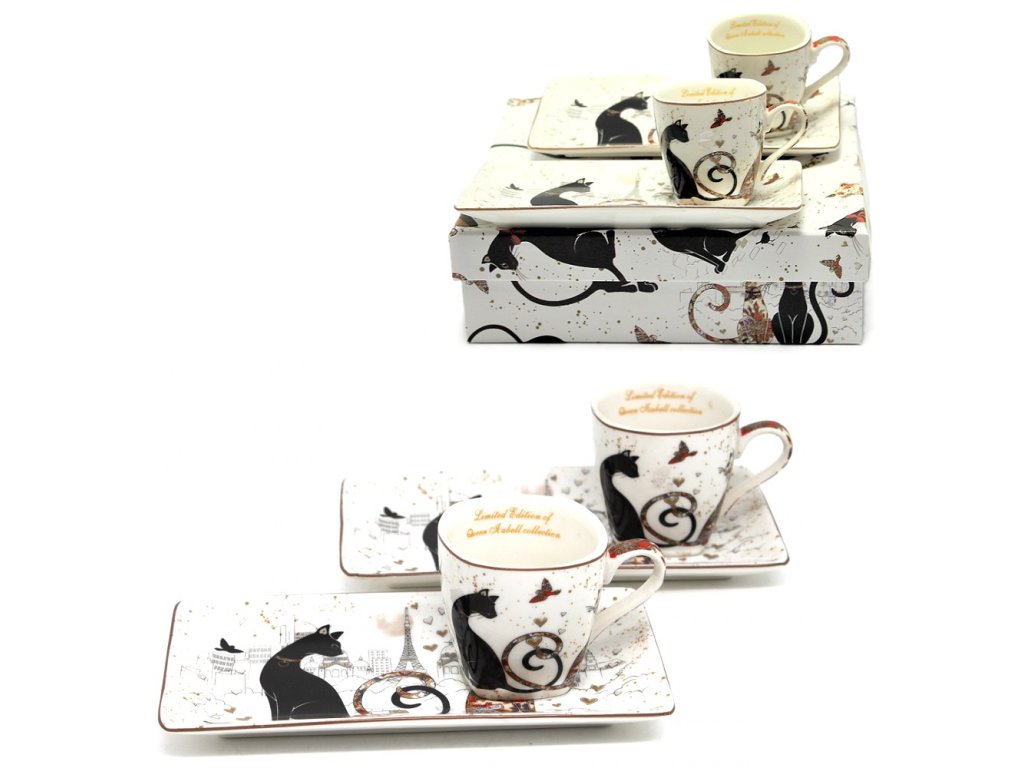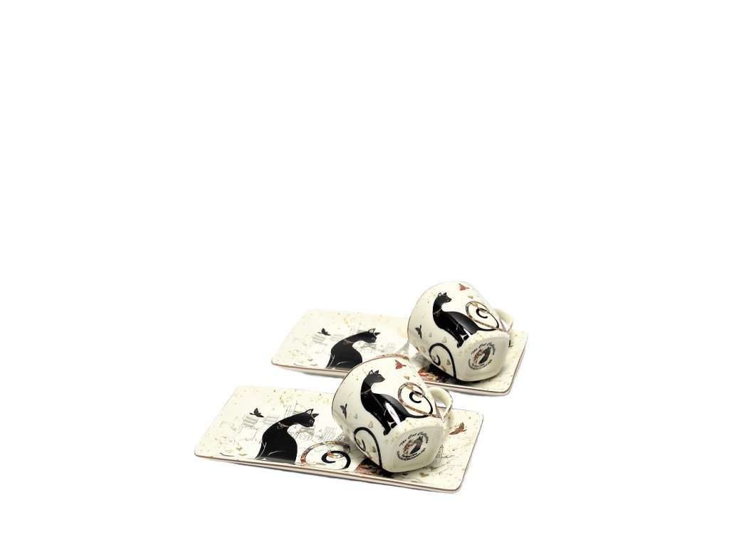 Šálek na espresso 80 ml s obdélníkovým podšálkem "Cats in Paris" - sada 2 ks