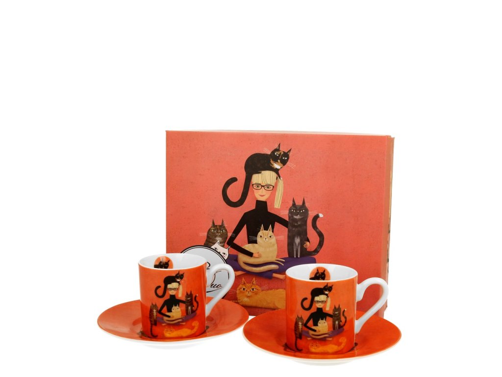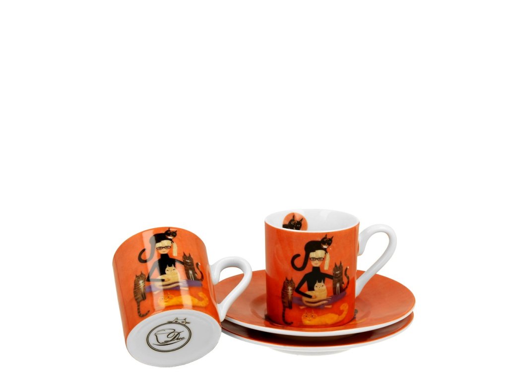 Šálek s podšálkem 90 ml na espresso - Cindy a její kočky - sada 2 ks