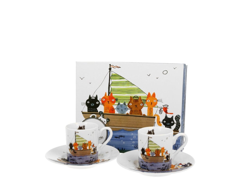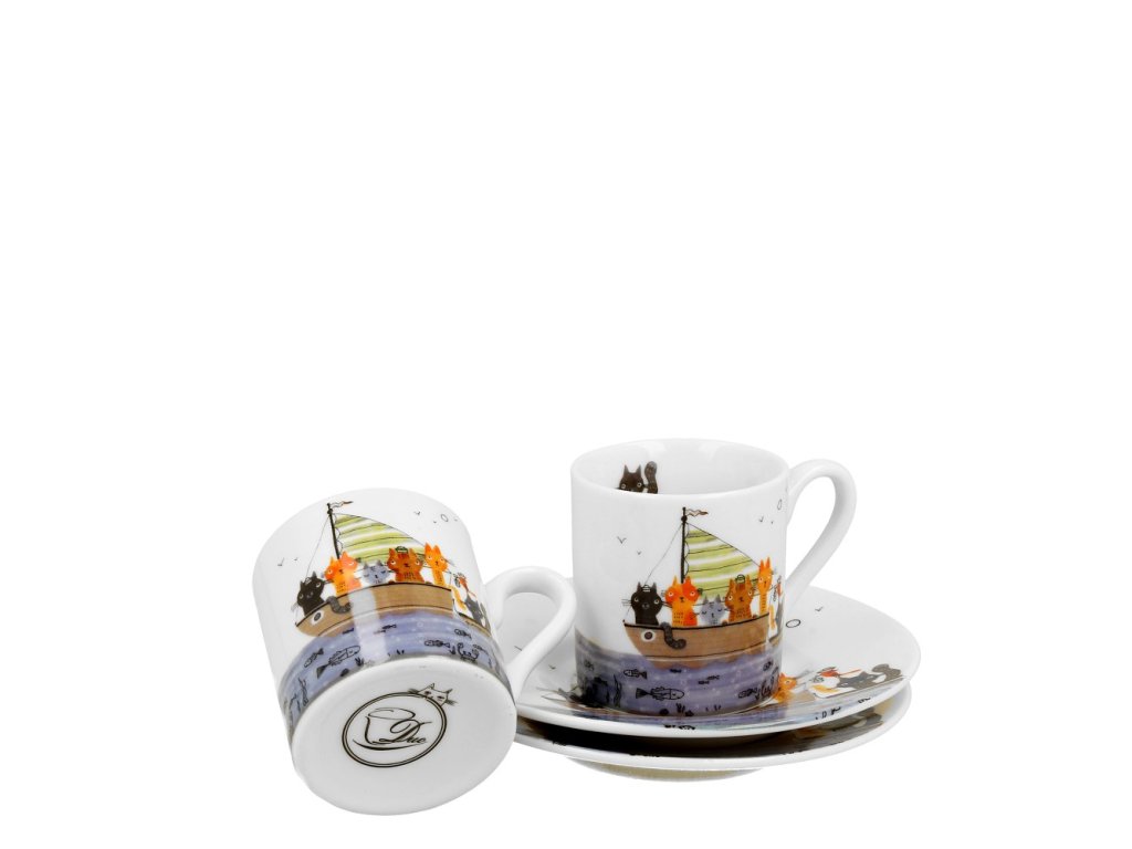 Šálek s podšálkem 90 ml na espresso - Kočičí posádka - sada 2 ks
