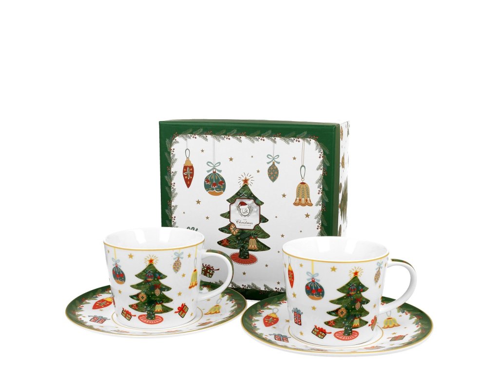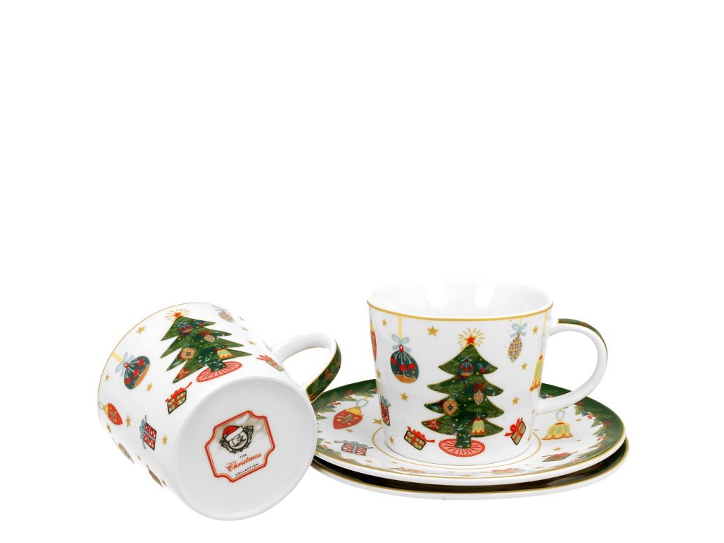 Šálek s podšálkem na espresso 200 ml - Okolo vánočního stromečku - sada 2 ks