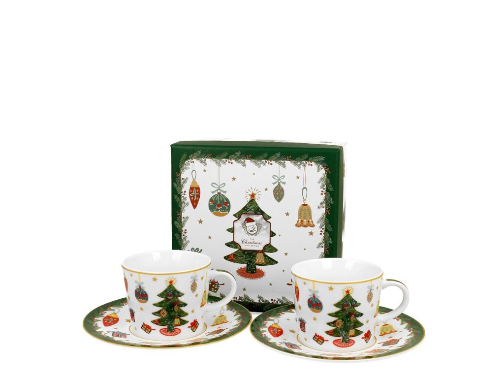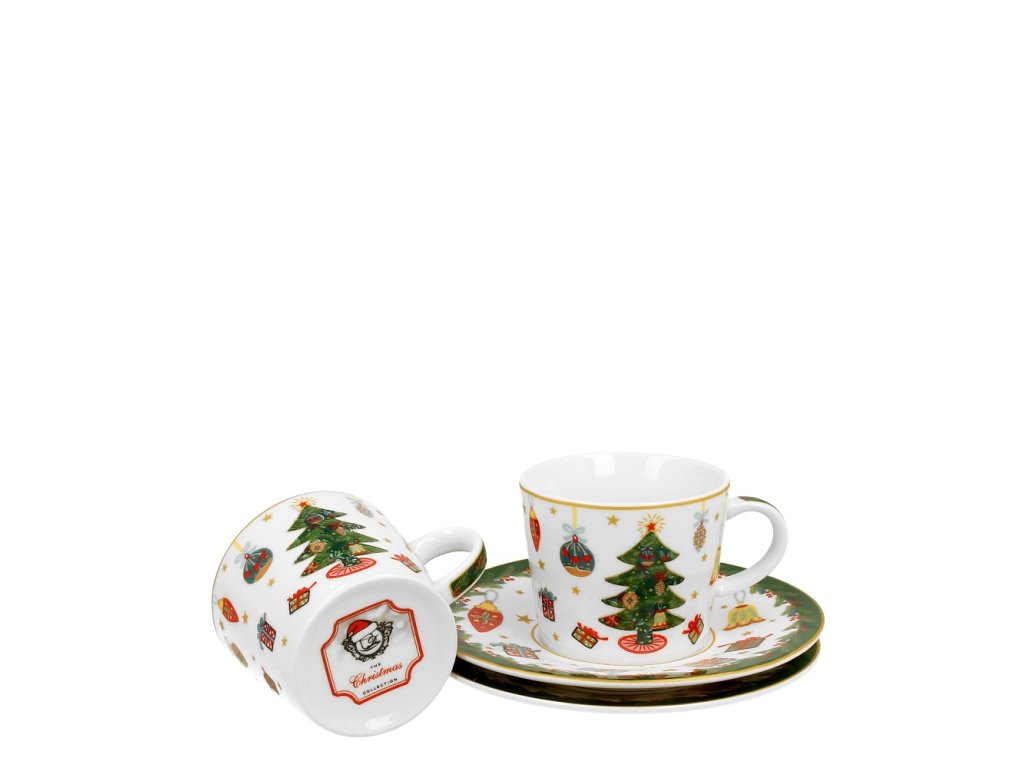 Šálek s podšálkem na espresso 90 ml - Okolo vánočního stromečku - sada 2 ks