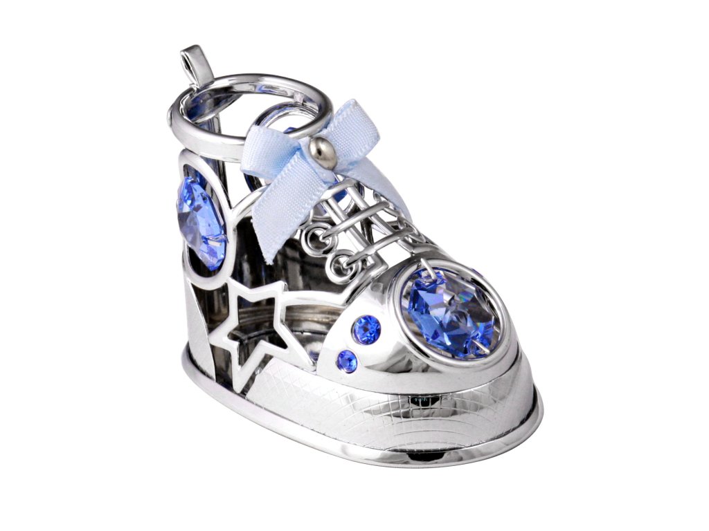Bota 7 x 4,6 cm modré křišťály stříbrná