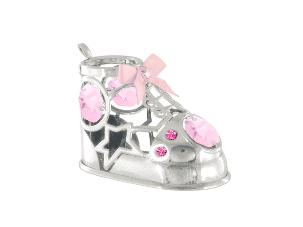 Bota 7 x 4,6 cm růžové křišťály stříbrná