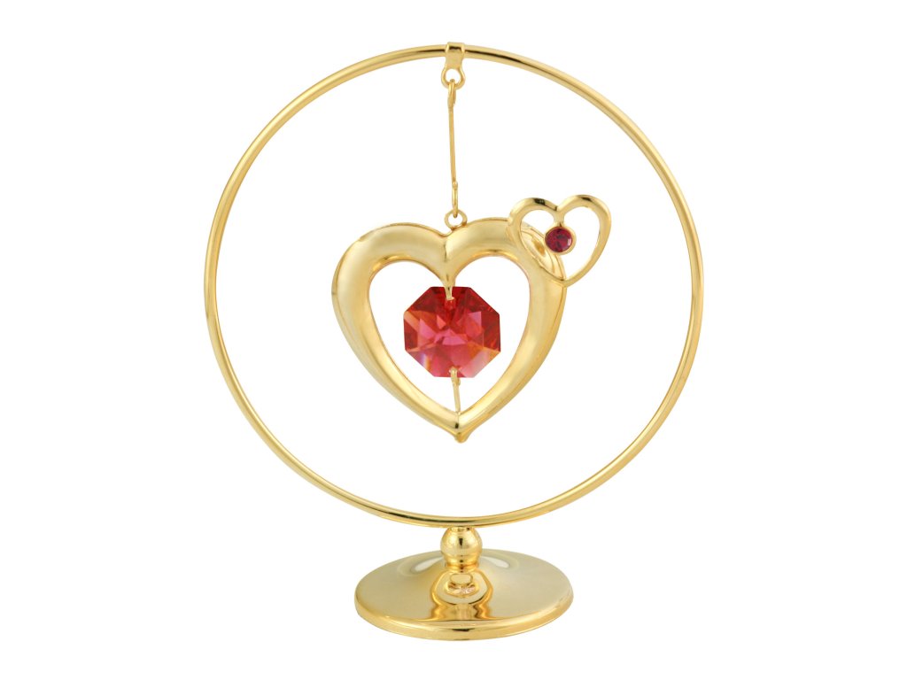 Dvojité srdce v kruhu červené křišťály gold
