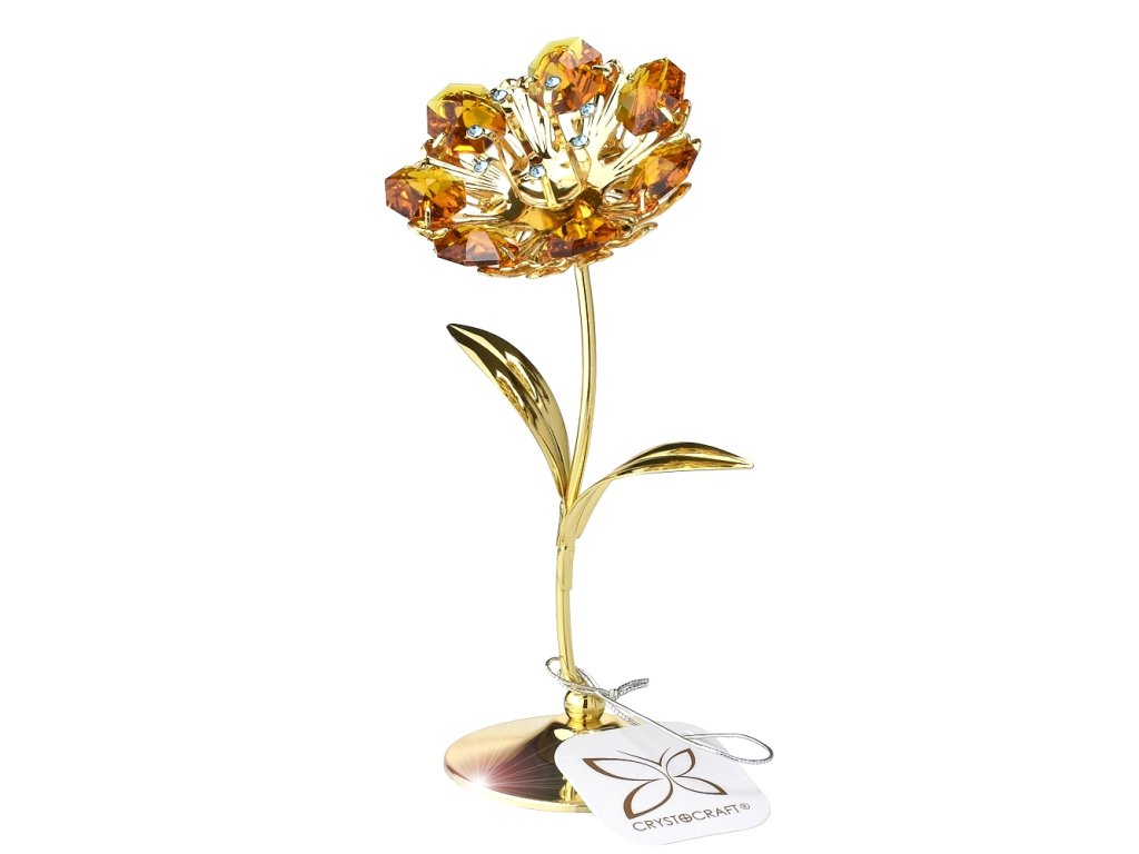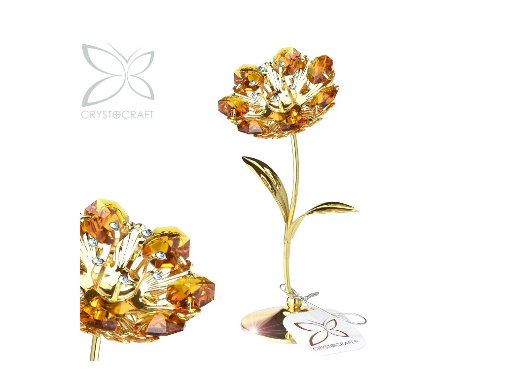 Zlacená kovová květinka, dekorovaná křišťály Bohemia Crystals. Baleno v dárkové krabičce s logem výrobce.