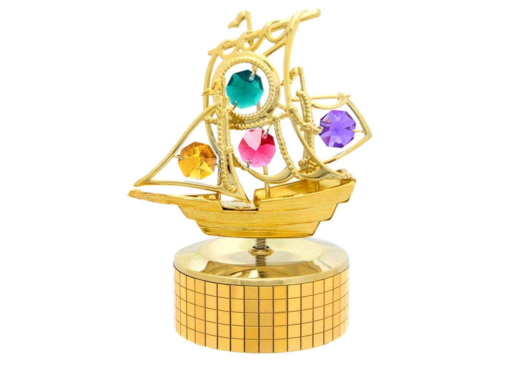 Loď, hudební skříňka barevné křišťály gold