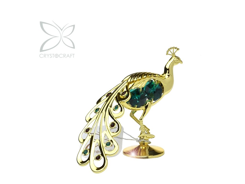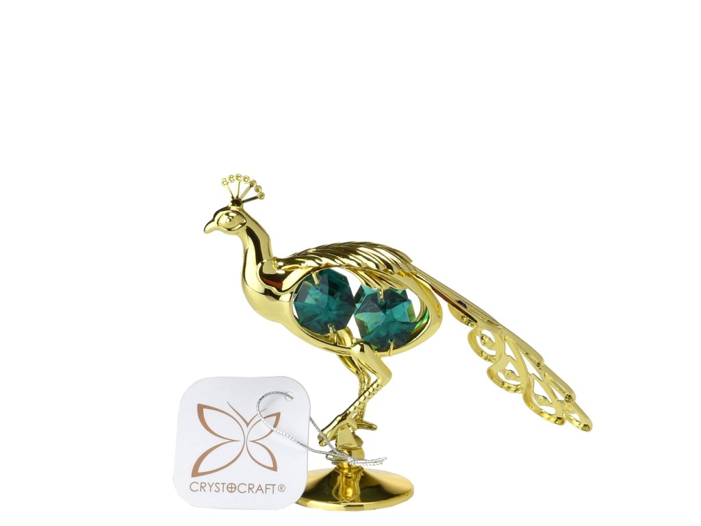 Páv 10,5 cm - zelené křišťály