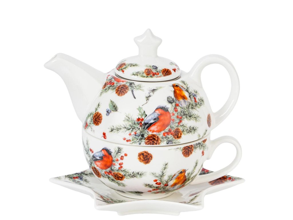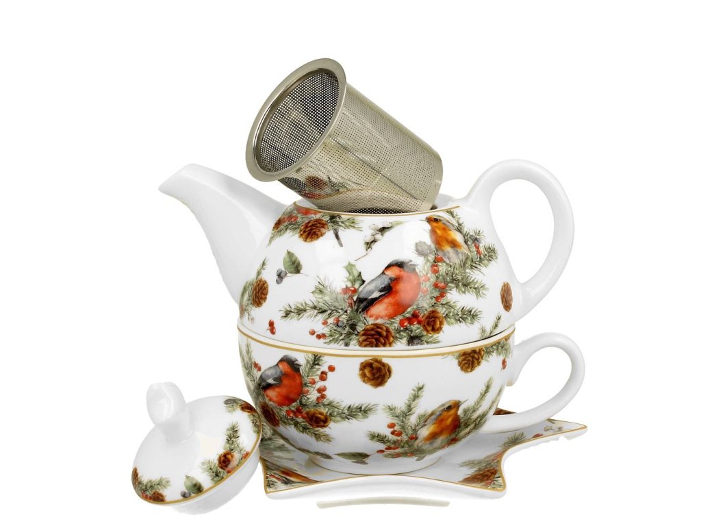 Porcelánová konvička značky DUO porcelain s jemným nerez sítkem, šálkem a víčkem na čaj na Váš vánoční stůl. Vhodné do myčky na nádobí i mikrovlnné trouby.
