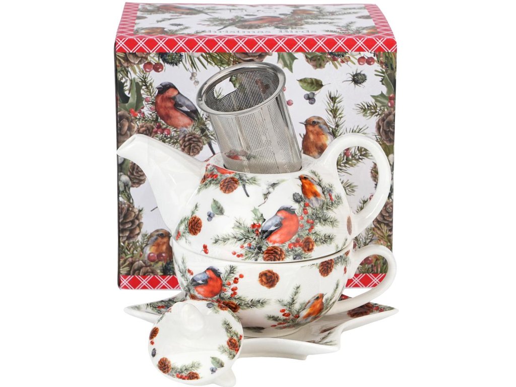 Porcelánový šálek se skleněnou konvičkou a podšálkem v dárkové krabičce, dekor PTÁČCI. Objem konvičky je 330 ml, objem šálku je 255 ml.