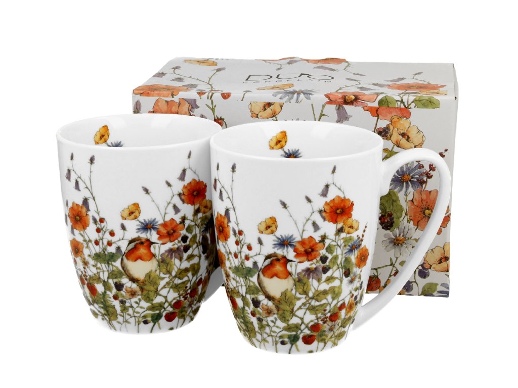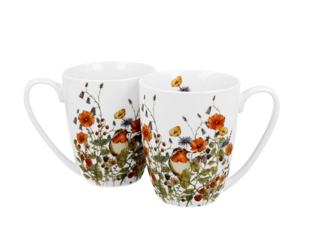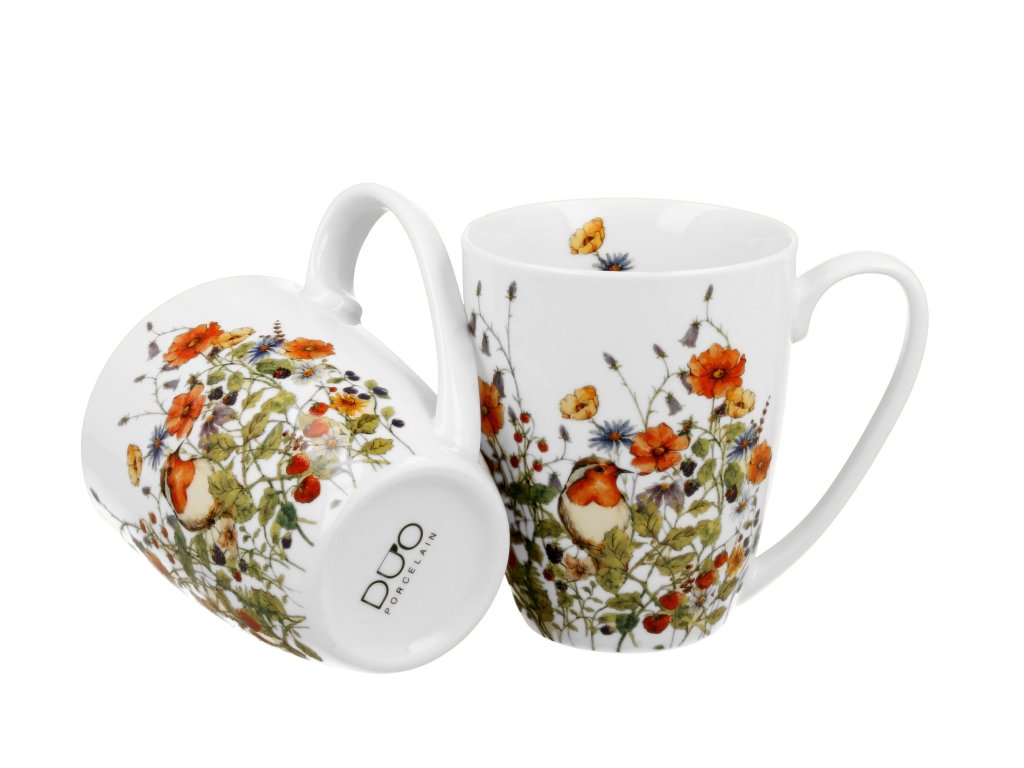 DG - Porcelánové hrnky WILD BIRD ptáčci v lučním kvítí 2 ks - 360 ml
