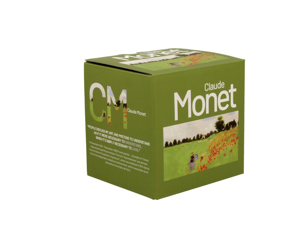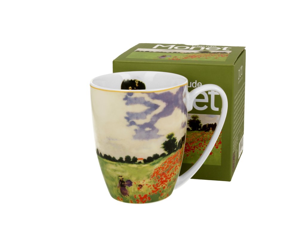 Klasický hrnek 380 ml MAKOVÉ POLE C. Monet, součást série Art Gallery, vyrobený z kvalitního porcelánu, vyznačující se elegantní a přírodní krémově bílou barvou s jemným leskem a mimořádnou odolností při zachování lehkosti a jemnosti. Linka z bílého porcelánu uvnitř zdobená fragmentem reprodukce obrazu „Vlčí máky u Argenteuil“ od Claudy Moneta. Okouzlující a jemný obraz v pastelových barvách uspokojí vkus nejen milovníků malířského umění. Celé je to zabaleno v ozdobné krabičce zdobené stejným motivem, je to skvělý nápad na originální dárek nejen pro milovníky umění a malby. Poppies u Argenteuil z roku 1873 je jedním z nejznámějších obrazů francouzského impresionisty. Umělec opět představuje své oblíbené téma - plenér, kde volně ukazuje pohyb při zachování klidu idylické atmosféry. Obraz ukazuje jeho manželku a syna poblíž jejich domova v Argenteuil. Stejně jako v mnoha jiných dílech Moneta je Camilla kreslená s deštníkem v rukou a jeho ladné obrysy dodávají obrazu zvláštní kouzlo. V současné době je obraz vystaven v muzeu Orsay v Paříži.