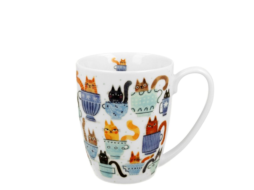 Porcelánový hrnek Kočky v šálcích si při popíjení oblíbeného nápoje snadno oblíbíte.