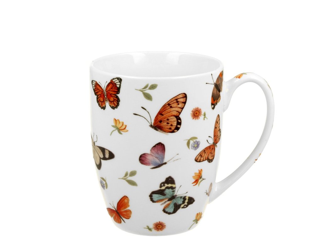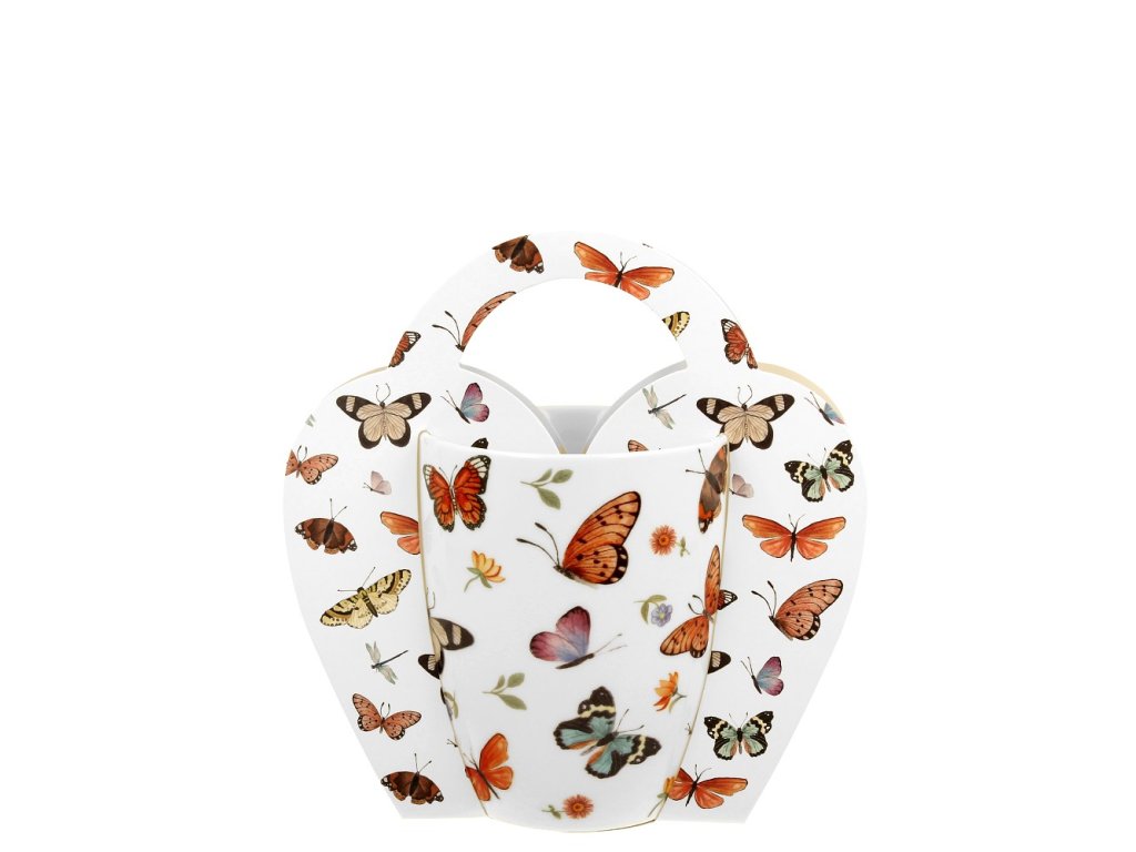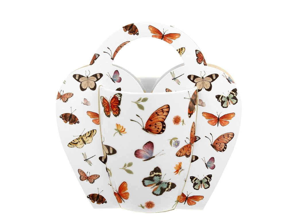 Porcelánový hrnek s romanticky polétajícím motýly si při popíjení oblíbeného nápoje snadno oblíbíte.