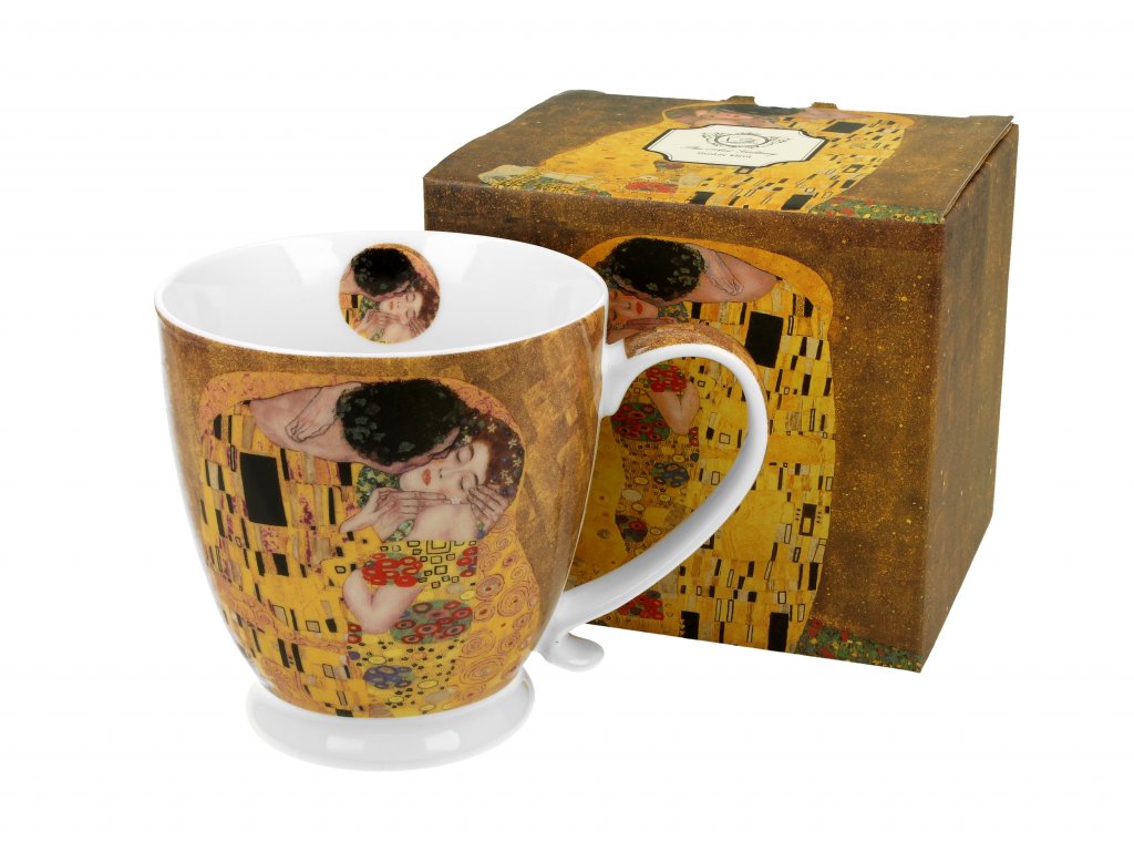DG - Porcelánový hrnek na stopce, dekor G. Klimt POLIBEK v dárkové krabičce - 480 ml