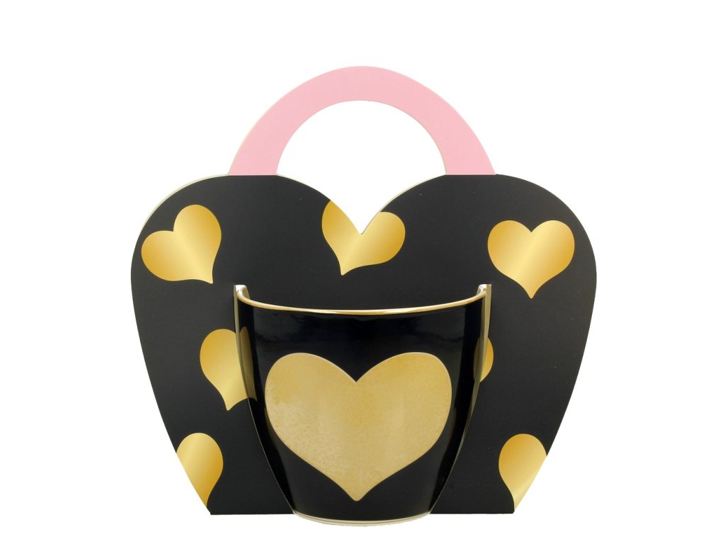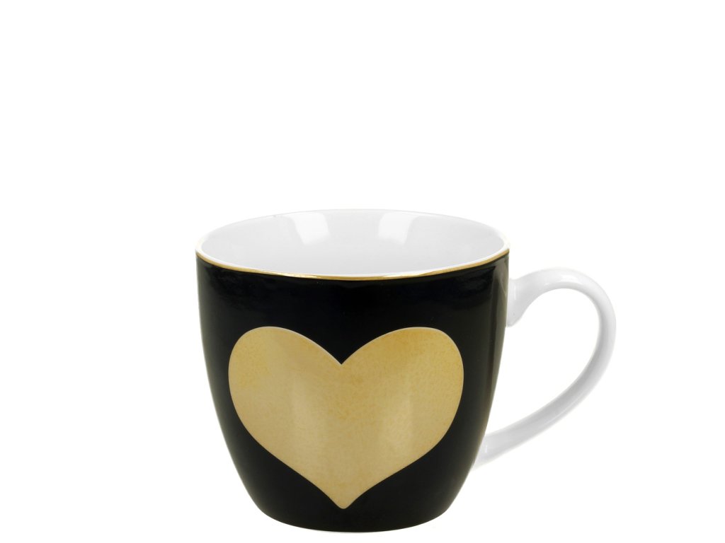 DP - Porcelánový hrnek v srdci Zlaté plné srdce na černém podkladu - 460 ml