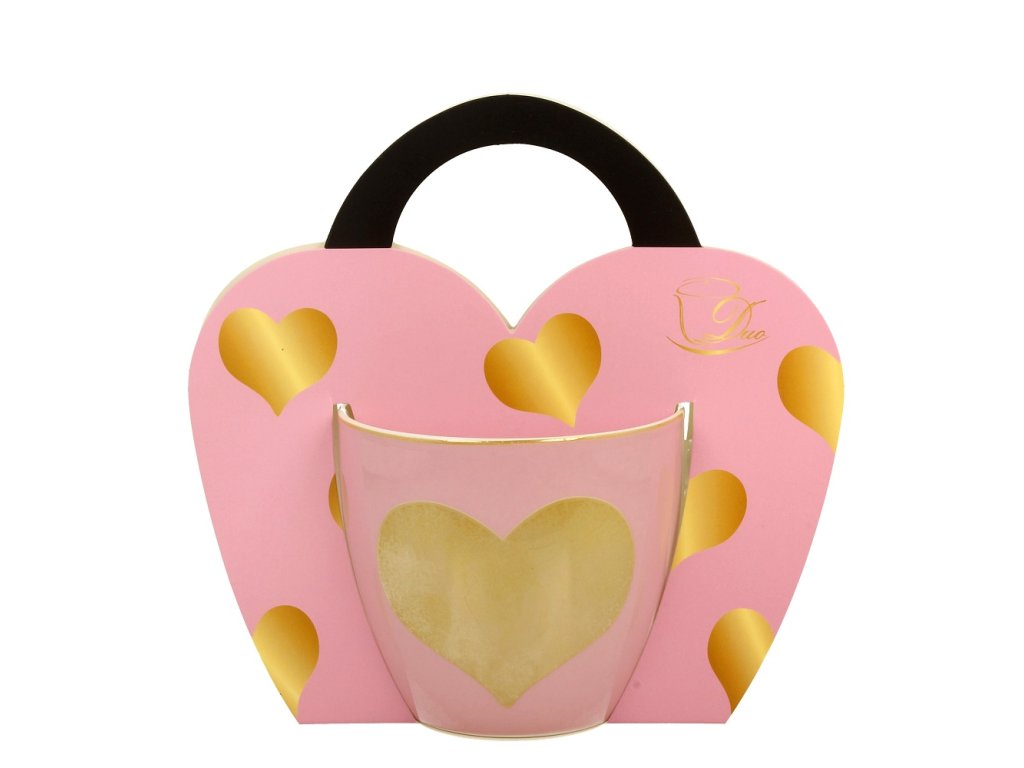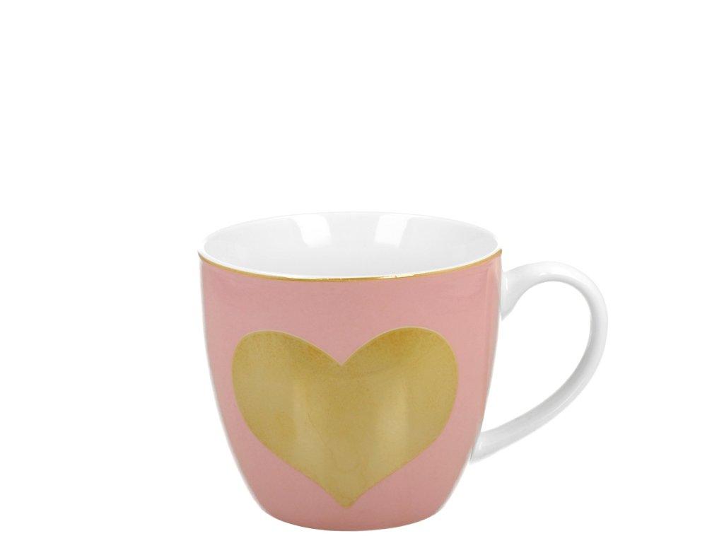 DP - Porcelánový hrnek v srdci Zlaté plné srdce na růžovém podkladu - 460 ml