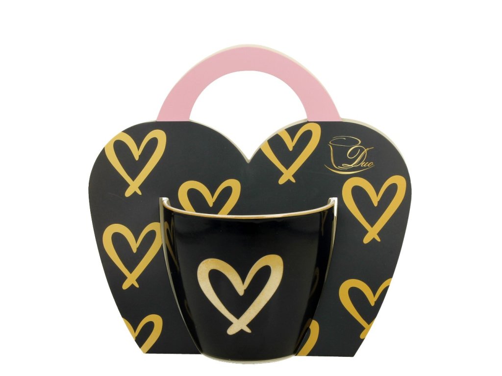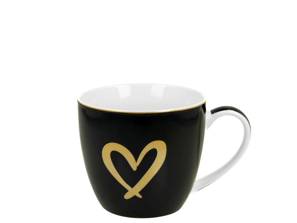 DP - Porcelánový hrnek v srdci Zlaté srdíčko na černém podkladu - 460 ml