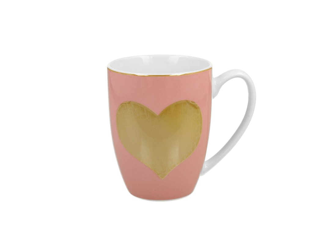 DP - Porcelánový hrnek Zlaté plné srdíčko na růžovém podkladu - 380 ml