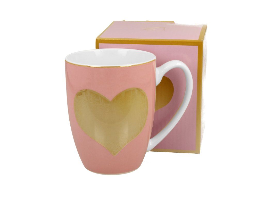 Klasický růžový hrnek BIG HEART, součást série HEARTS, je vyroben z porcelánu New Bone China, který se pyšní přírodní krémově bílou barvou s jemným leskem a je mimořádně odolný a má dlouhou životnost, a přesto si zachovává lehký a rafinovaný vzhled. Hrnek je zdoben velkým zlatým srdcem na pastelově růžovém pozadí. Hrnek je zabalen v dekorativní krabičce se stejným motivem a je perfektním dárkem pro každou milovanou osobu – nejen na Valentýna.