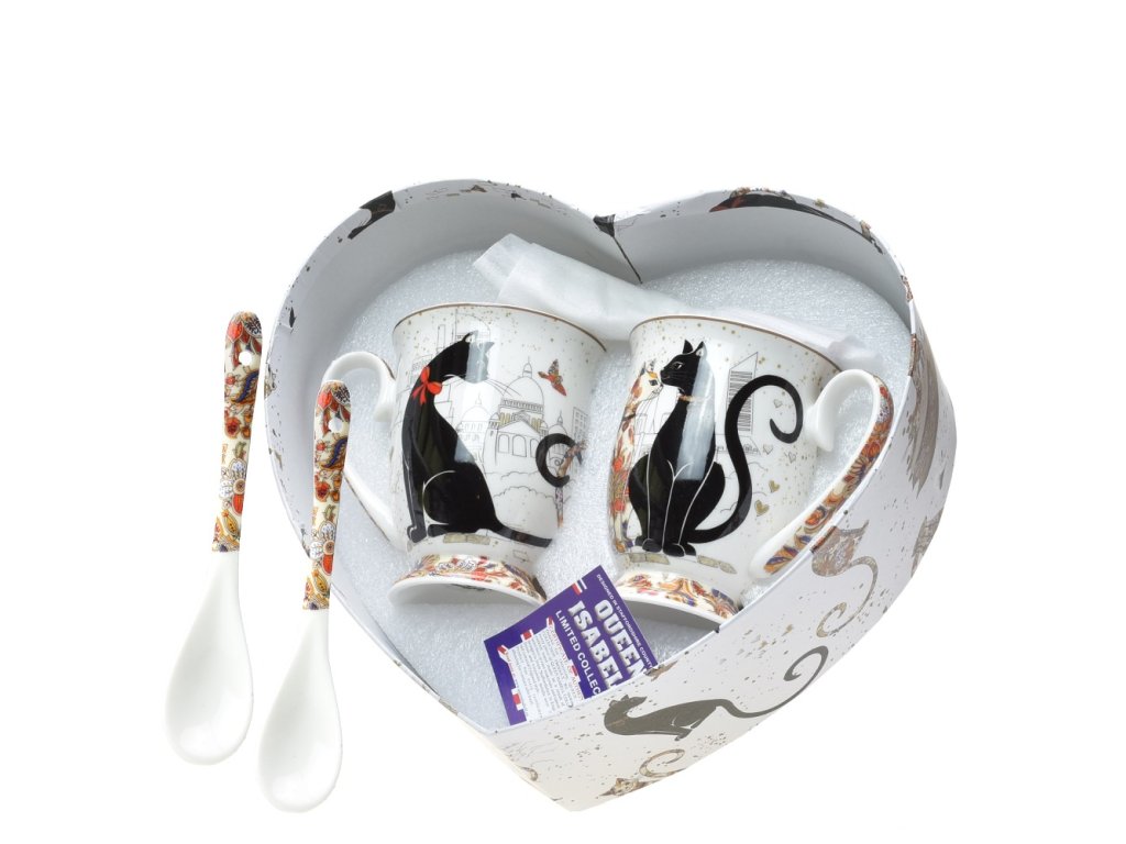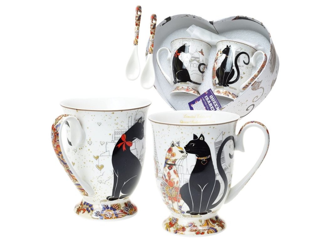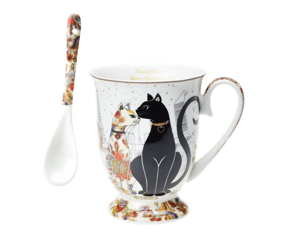 Hrnek 300 ml se lžičkou "Cats in love" - sada 2 ks v srdci