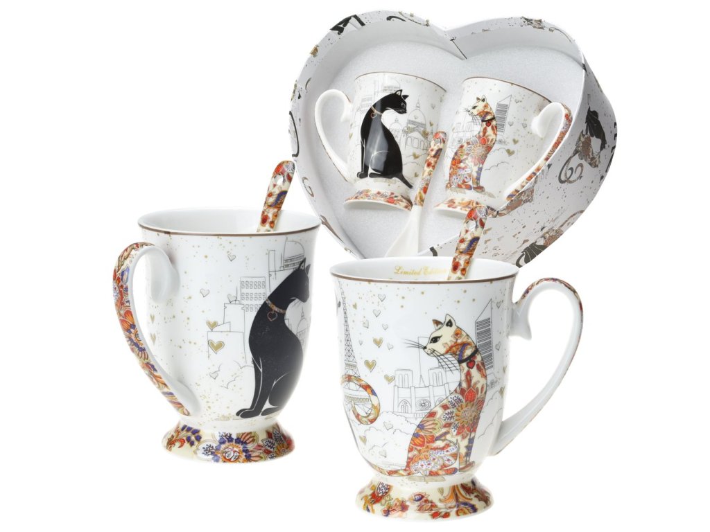 Hrnek 300 ml se lžičkou "Cats in Paris" - sada 2 ks v srdci
