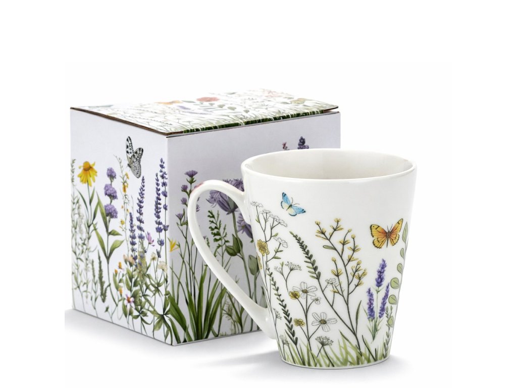 Porcelánový hrnek konusového tvaru na kávu, čaj či latté značky Marco Polo v pěkné pevné dárkové krabičce. Lze použít v mikrovlnné troubě i myčce na nádobí.
