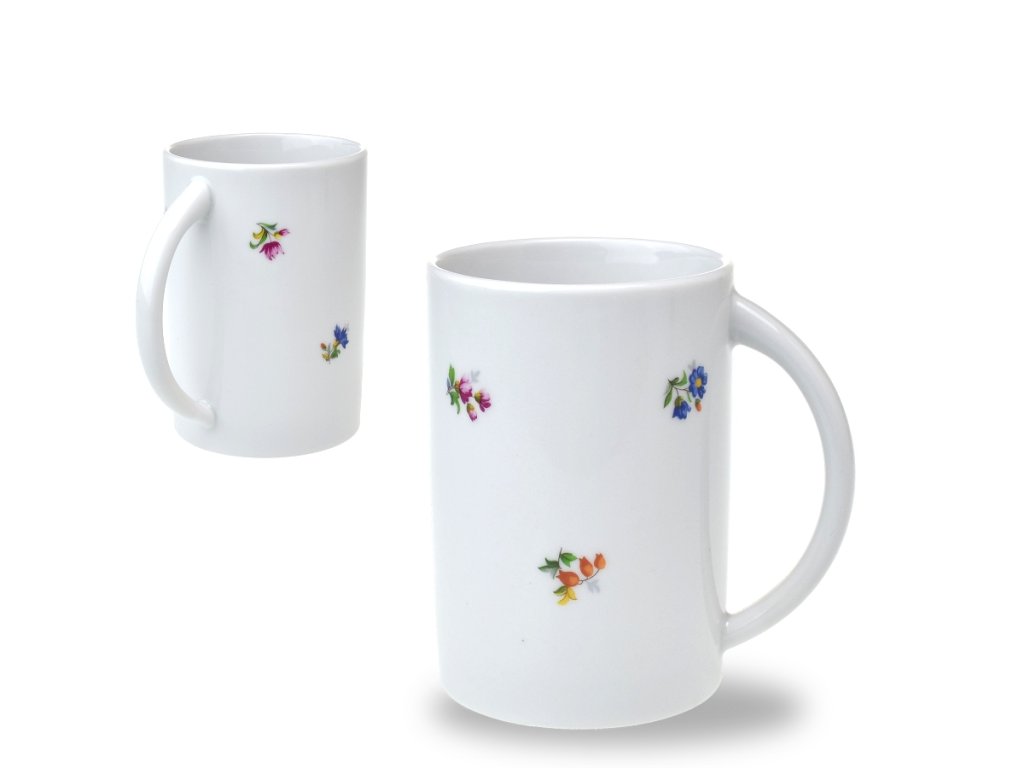 Hrnek z Českého porcleánu a.s. v Dubí s originálně řešeným ouškem. Lze použít v mikrovlnné troubě i myčce na nádobí.