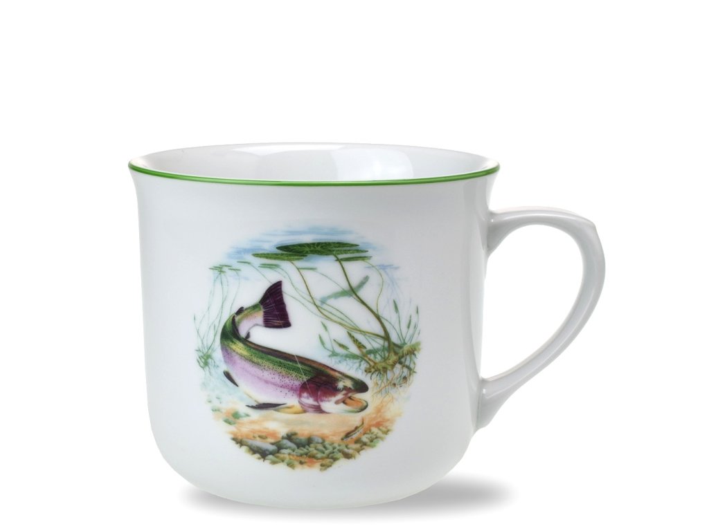 Klasický velký hrnek z dubské porcelánky s rovným dnem s rybářským dekorem. Lze použít v mikrovlnné troubě i myčce na nádobí. kvalitní glazura s vysokým leskem vysoká odolnost a životnost vyrobeno v České republice