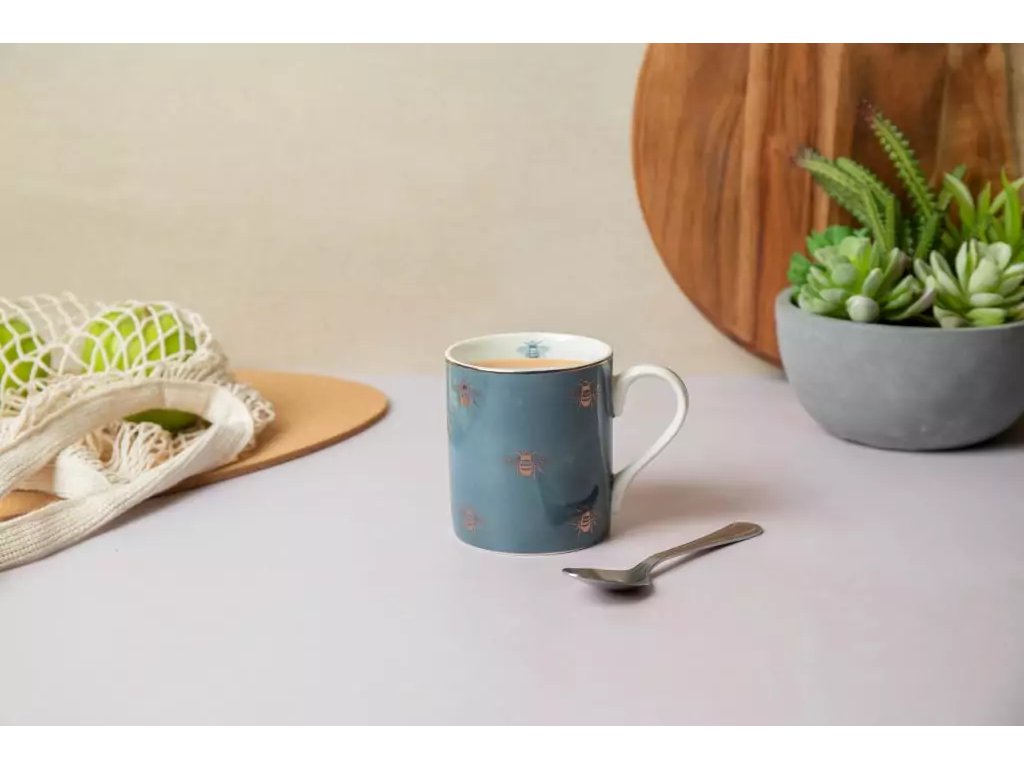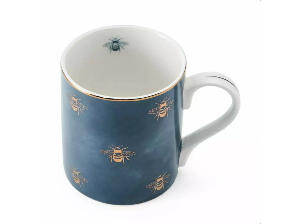 Tento porcelánový hrnek Bees je dokonalým doplňkem sbírky každého milovníka psů. Je to atraktivní hrnek s realistickou ilustrací včelek na modré barvě. Tento hrnek s potiskem a zlatým lemem po okraji je vyroben z odolného porcelánu. Vzhledem k povaze designu doporučujeme mýt v ruce. Tento neotřelý hrnek je ideální nejen pro doplnění vaší kuchyně, ale je také okouzlujícím dárkem pro, milovníky přírody. Hrnek je dodáván v krásné dárkové krabičce, takže je bezproblémovým dárkem pro každou příležitost. Objem je 280 ml.