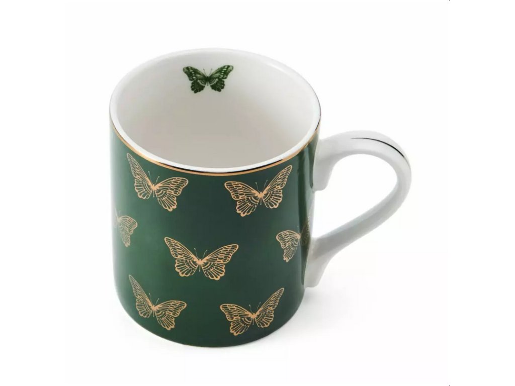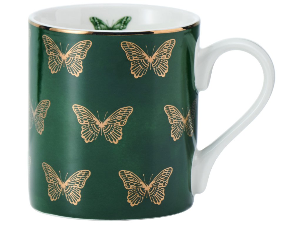 Tento porcelánový hrnek Mikasa Butterflies je dokonalým doplňkem sbírky každého milovníka přírody. Je to atraktivní hrnek s realistickou ilustrací zlatých motýlků na zelené barvě. Tento hrnek s potiskem a zlatým lemem po okraji je vyroben z odolného porcelánu. Vzhledem k povaze designu doporučujeme mýt v ruce. Tento neotřelý hrnek je ideální nejen pro doplnění vaší kuchyně, ale je také okouzlujícím dárkem pro, milovníky přírody. Hrnek je dodáván v krásné dárkové krabičce, takže je bezproblémovým dárkem pro každou příležitost. Objem je 280 ml.