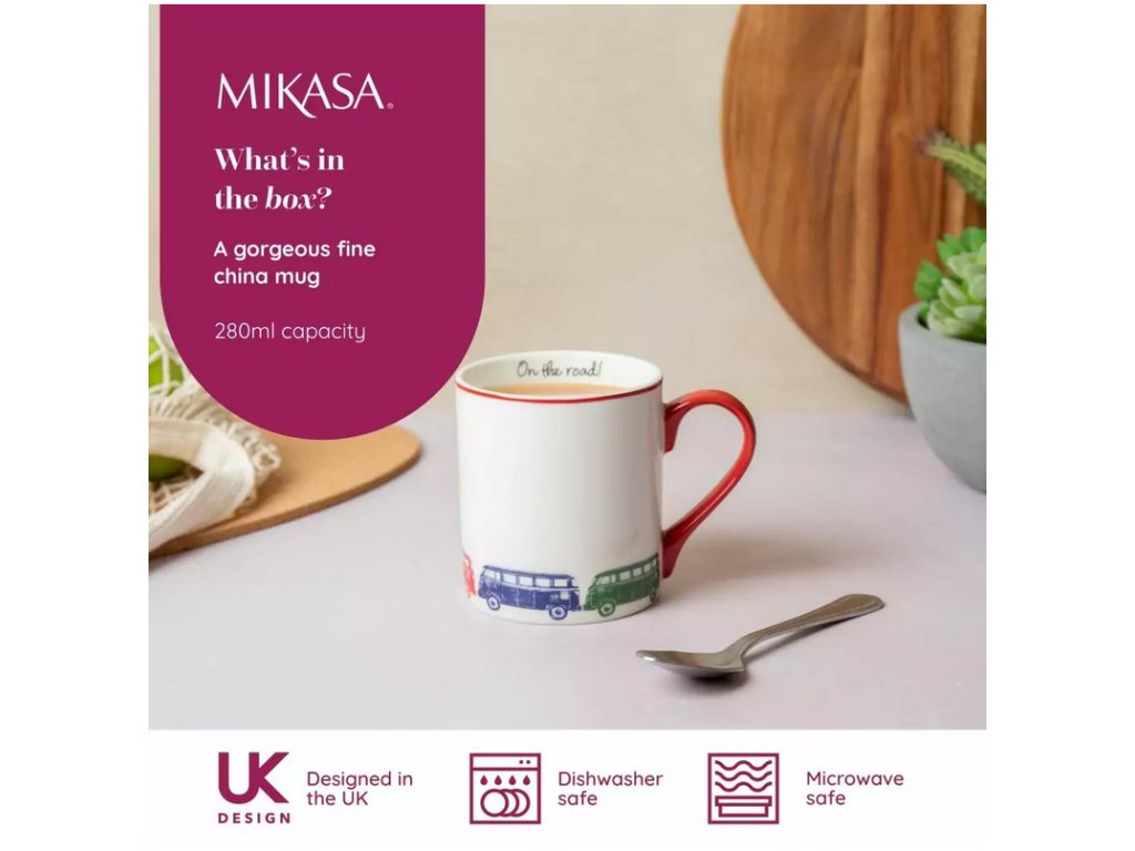 Porcelánový hrnek Mikasa Camper Van je vyroben v Číně pro renomovanou anglickou značku KitchenCraft. Každý hrnek prochází pečlivou kontrolou kvality, aby byl dodán v perfektním stavu.