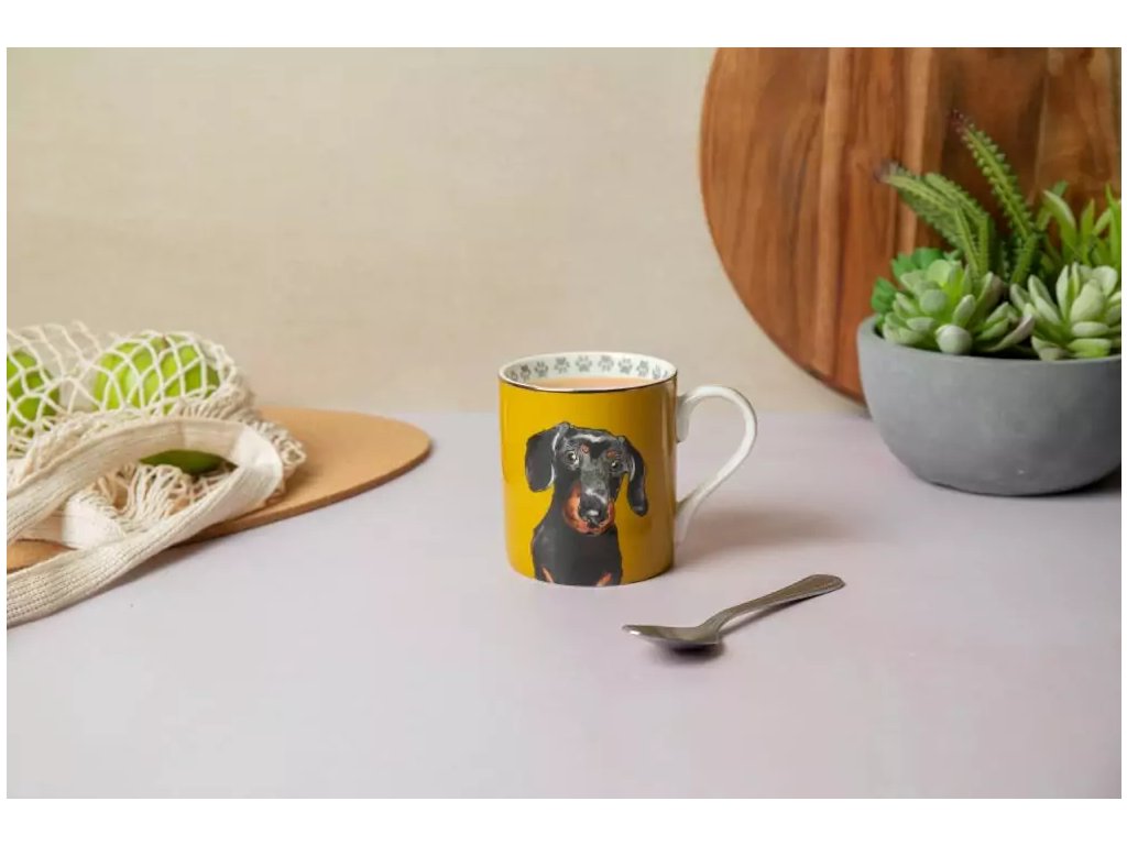 Objevte kouzlo každého doušku s porcelánovým hrnkem Mikasa Dachshund. Tento hrnek je ideální volbou pro všechny, kteří milují psy a design. Realistická ilustrace jezevčíka na jasně žlutém pozadí zaujme na první pohled. Hrnek nejen krásně vypadá, ale je také praktický a odolný.
