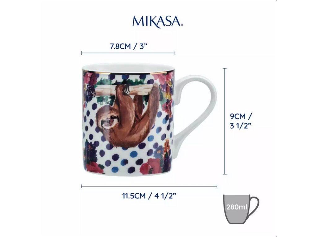 Vydejte se na výlet do exotické divočiny s tímto porcelánovým hrnkem Wild At Heart Sloth. Tento hrnek s detailní ilustrací lenochoda na květinovém bílém pozadí je atraktivním doplňkem každé kuchyně nebo kanceláře. Složité detaily a živé barvy jsou doplněny zlatou linkou. Vzhledem k povaze designu doporučujeme mýt v ruce. Tento neotřelý hrnek je ideální nejen pro doplnění vaší kuchyně, ale je také okouzlujícím dárkem pro, milovníky přírody. Hrnek je dodáván v krásné dárkové krabičce, takže je bezproblémovým dárkem pro každou příležitost. Objem je 280 ml.
